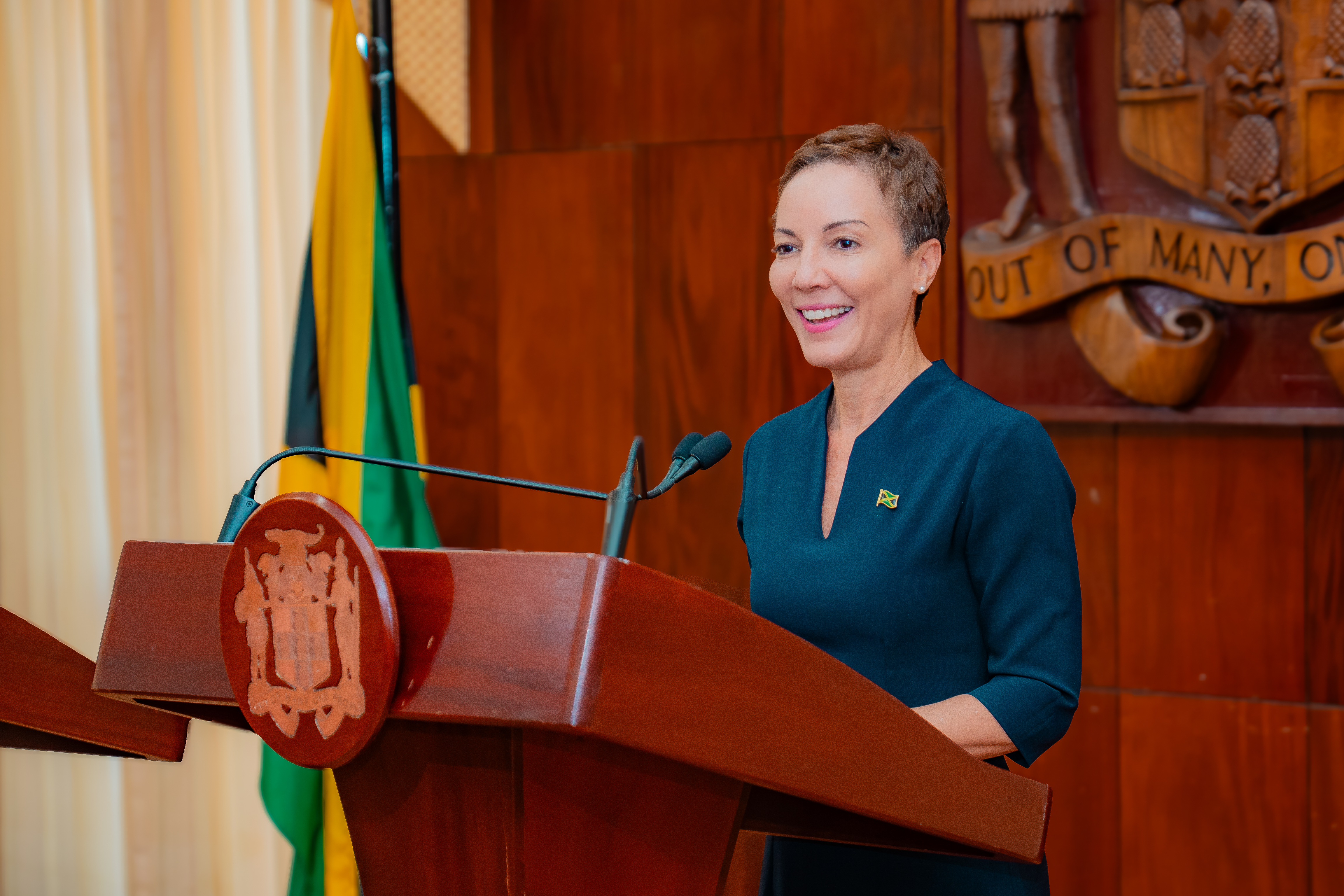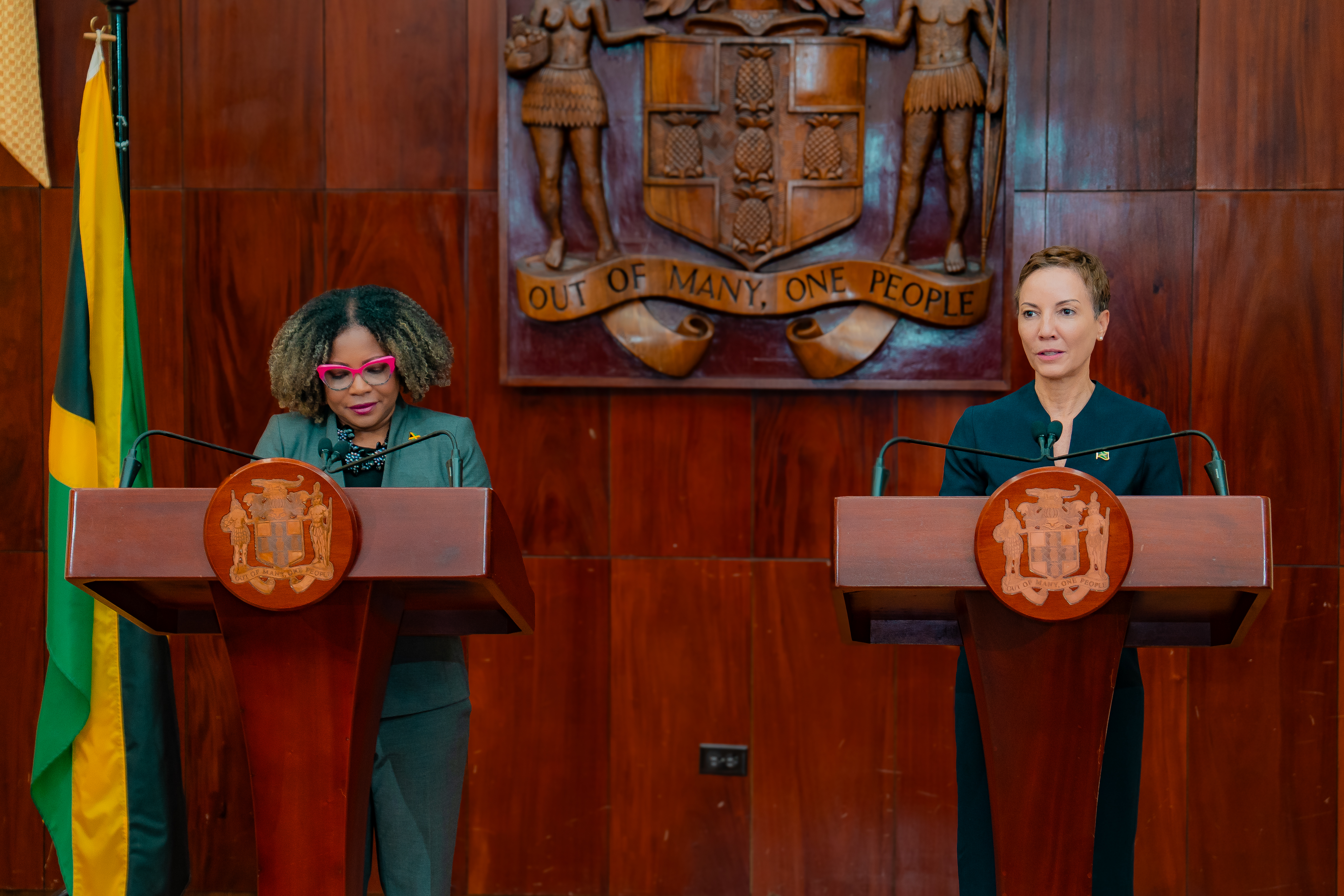 Minister of Foreign Affairs and Foreign Trade, Senator the Honourable Kamina Johnson Smith briefs the nation on Jamaica’s participation in UNGA80 High-Level Week during a Post Cabinet briefing on October 1