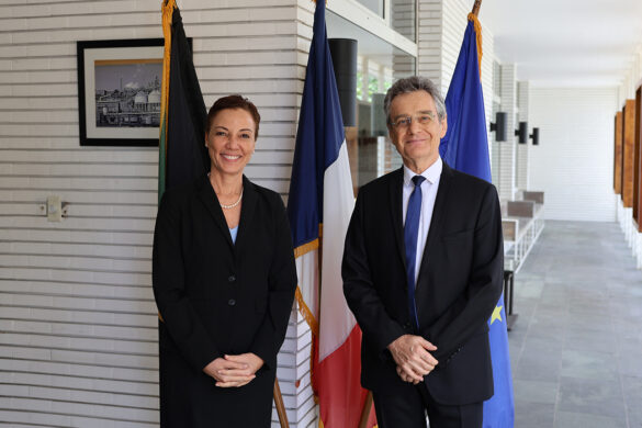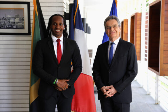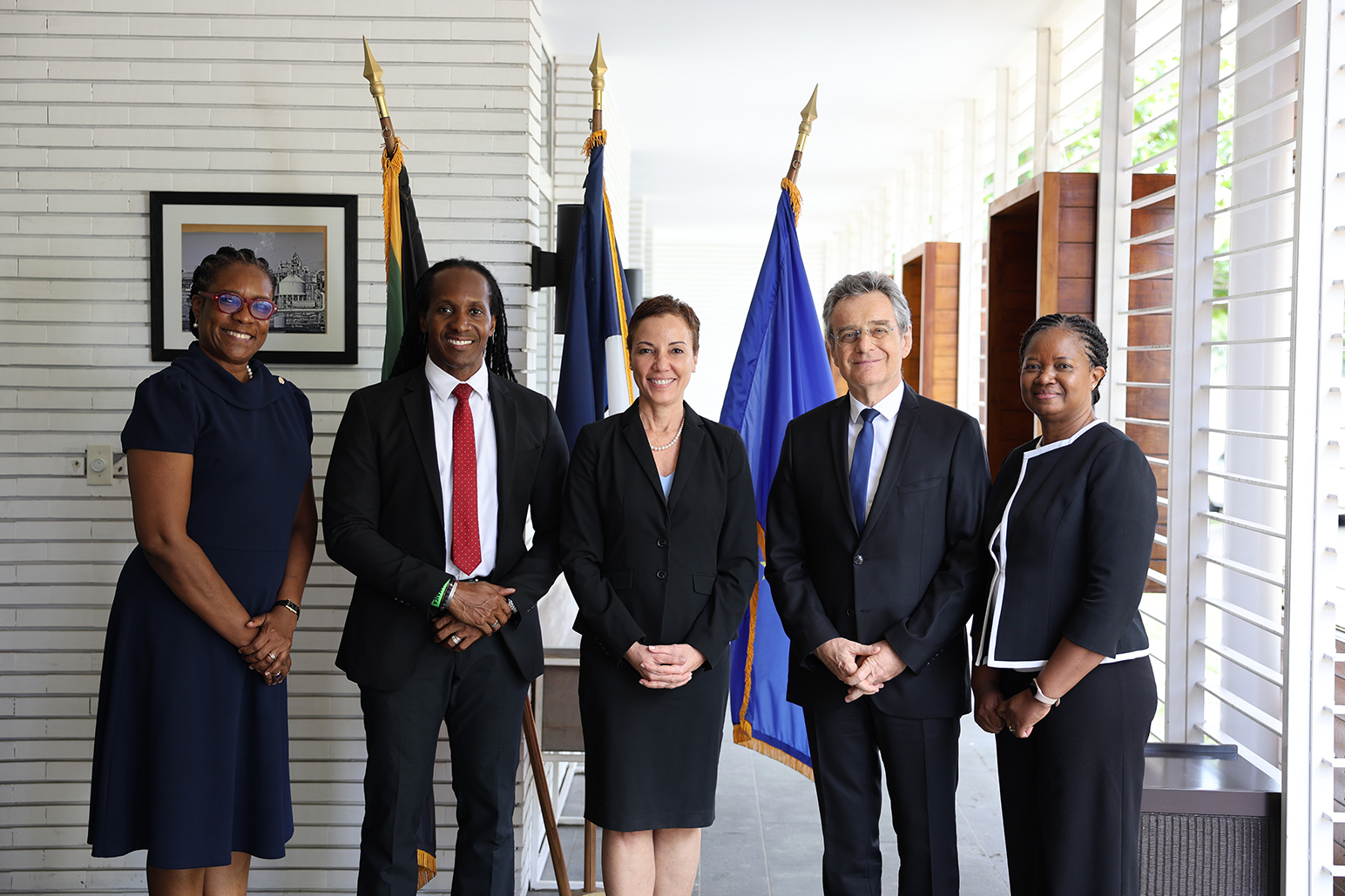 Minister of Foreign Affairs and Foreign Trade, Senator the Honourable Kamina Johnson Smith and State Minister, the Honourable Alando Terrelonge join ministry officials and other government stakeholders at a Farewell Luncheon hosted by the Ambassador of the French Republic to Jamaica, His Excellency Olivier Guyonvarch.