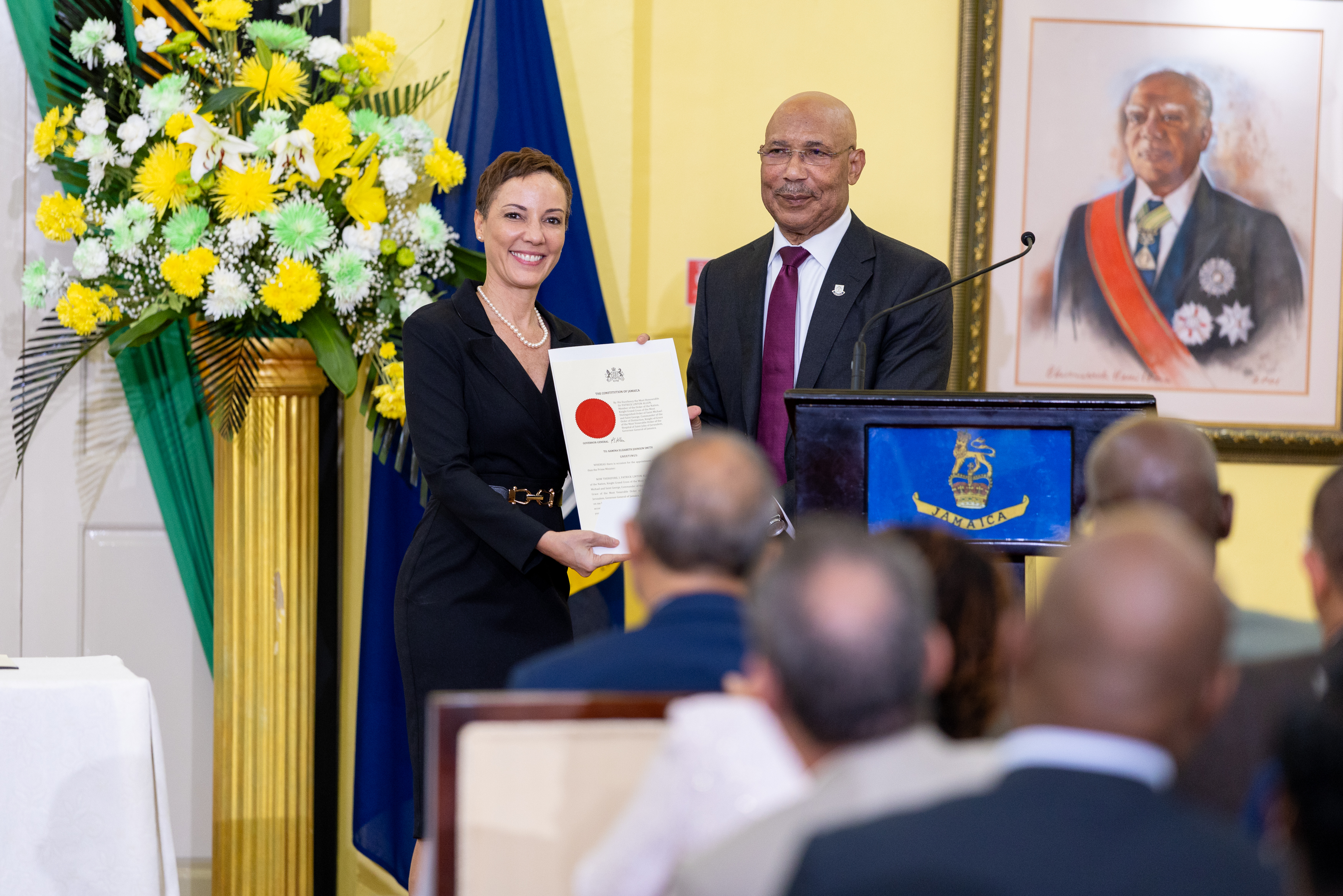 Senator the Honourable Kamina Johnson Smith is sworn in as Minister of Foreign Affairs and Foreign Trade, following her reappointment by Prime Minister Dr. the Most Honourable Andrew Holness. The ceremony took place at King’s House on Wednesday, September 17